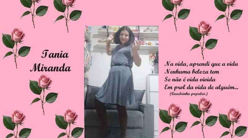 Trabalho como Agente de Organização Escolar (Secretaria de Educação do Estado de São Paulo) embora no momento esteja prestando serviço junto ao TRE, no Cartório Eleitoral como Auxiliar Requisitada. Gosto de escrever, tenho dois livros publicados, “Tirésias, a dualidade da alma humana”(autobiografia), pela Editora Verso e Prosa e “A volta do Justiceiro”, romance explorando o folclore brasileiro, publicado pela UICLAP. Publico crônicas diariamente em alguns grupos, meu perfil e meu blog… (taniamirandablog.blogspot .com)… sou casada, tenho quatro filhos e dois netos, sendo que minha neta mora comigo desde os três meses de idade…