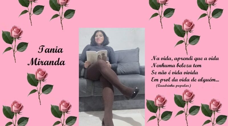 Trabalho como Agente de Organização Escolar (Secretaria de Educação do Estado de São Paulo) embora no momento esteja prestando serviço junto ao TRE, no Cartório Eleitoral como Auxiliar Requisitada. Gosto de escrever, tenho dois livros publicados, "Tirésias, a dualidade da alma humana"(autobiografia), pela Editora Verso e Prosa e "A volta do Justiceiro", romance explorando o folclore brasileiro, publicado pela UICLAP. Publico crônicas diariamente em alguns grupos, meu perfil e meu blog... (taniamirandablog.blogspot .com)... sou casada, tenho quatro filhos e dois netos, sendo que minha neta mora comigo desde os três meses de idade...
