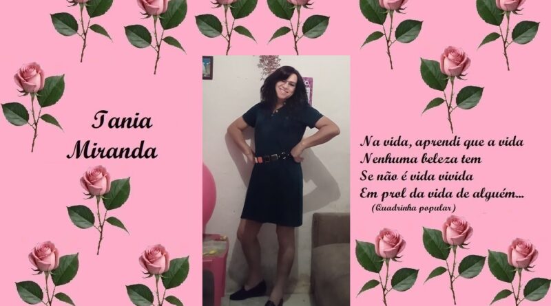 Trabalho como Agente de Organização Escolar (Secretaria de Educação do Estado de São Paulo) embora no momento esteja prestando serviço junto ao TRE, no Cartório Eleitoral como Auxiliar Requisitada. Gosto de escrever, tenho dois livros publicados, “Tirésias, a dualidade da alma humana”(autobiografia), pela Editora Verso e Prosa e “A volta do Justiceiro”, romance explorando o folclore brasileiro, publicado pela UICLAP. Publico crônicas diariamente em alguns grupos, meu perfil e meu blog… (taniamirandablog.blogspot .com)… sou casada, tenho quatro filhos e dois netos, sendo que minha neta mora comigo desde os três meses de idade…