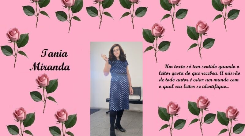 Trabalho como Agente de Organização Escolar (Secretaria de Educação do Estado de São Paulo) embora no momento esteja prestando serviço junto ao TRE, no Cartório Eleitoral como Auxiliar Requisitada. Gosto de escrever, tenho dois livros publicados, “Tirésias, a dualidade da alma humana”(autobiografia), pela Editora Verso e Prosa e “A volta do Justiceiro”, romance explorando o folclore brasileiro, publicado pela UICLAP. Publico crônicas diariamente em alguns grupos, meu perfil e meu blog… (taniamirandablog.blogspot .com)… sou casada, tenho quatro filhos e dois netos, sendo que minha neta mora comigo desde os três meses de idade…
