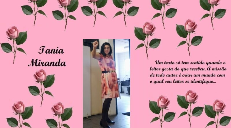 Trabalho como Agente de Organização Escolar (Secretaria de Educação do Estado de São Paulo) embora no momento esteja prestando serviço junto ao TRE, no Cartório Eleitoral como Auxiliar Requisitada. Gosto de escrever, tenho dois livros publicados, "Tirésias, a dualidade da alma humana"(autobiografia), pela Editora Verso e Prosa e "A volta do Justiceiro", romance explorando o folclore brasileiro, publicado pela UICLAP. Publico crônicas diariamente em alguns grupos, meu perfil e meu blog... (taniamirandablog.blogspot .com)... sou casada, tenho quatro filhos e dois netos, sendo que minha neta mora comigo desde os três meses de idade...