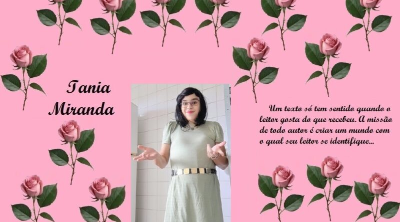 Trabalho como Agente de Organização Escolar (Secretaria de Educação do Estado de São Paulo) embora no momento esteja prestando serviço junto ao TRE, no Cartório Eleitoral como Auxiliar Requisitada. Gosto de escrever, tenho dois livros publicados, “Tirésias, a dualidade da alma humana”(autobiografia), pela Editora Verso e Prosa e “A volta do Justiceiro”, romance explorando o folclore brasileiro, publicado pela UICLAP. Publico crônicas diariamente em alguns grupos, meu perfil e meu blog… (taniamirandablog.blogspot .com)… sou casada, tenho quatro filhos e dois netos, sendo que minha neta mora comigo desde os três meses de idade…