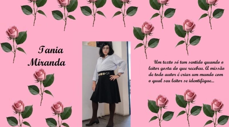 Trabalho como Agente de Organização Escolar (Secretaria de Educação do Estado de São Paulo) embora no momento esteja prestando serviço junto ao TRE, no Cartório Eleitoral como Auxiliar Requisitada. Gosto de escrever, tenho dois livros publicados, “Tirésias, a dualidade da alma humana”(autobiografia), pela Editora Verso e Prosa e “A volta do Justiceiro”, romance explorando o folclore brasileiro, publicado pela UICLAP. Publico crônicas diariamente em alguns grupos, meu perfil e meu blog… (taniamirandablog.blogspot .com)… sou casada, tenho quatro filhos e dois netos, sendo que minha neta mora comigo desde os três meses de idade…