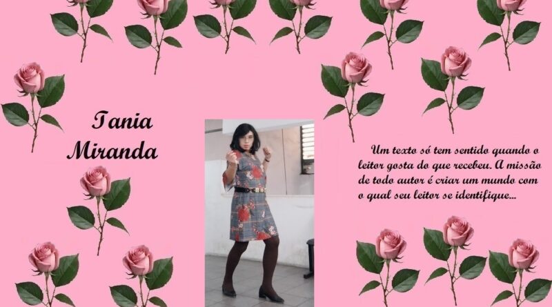 Trabalho como Agente de Organização Escolar (Secretaria de Educação do Estado de São Paulo) embora no momento esteja prestando serviço junto ao TRE, no Cartório Eleitoral como Auxiliar Requisitada. Gosto de escrever, tenho dois livros publicados, “Tirésias, a dualidade da alma humana”(autobiografia), pela Editora Verso e Prosa e “A volta do Justiceiro”, romance explorando o folclore brasileiro, publicado pela UICLAP. Publico crônicas diariamente em alguns grupos, meu perfil e meu blog… (taniamirandablog.blogspot .com)… sou casada, tenho quatro filhos e dois netos, sendo que minha neta mora comigo desde os três meses de idade…
