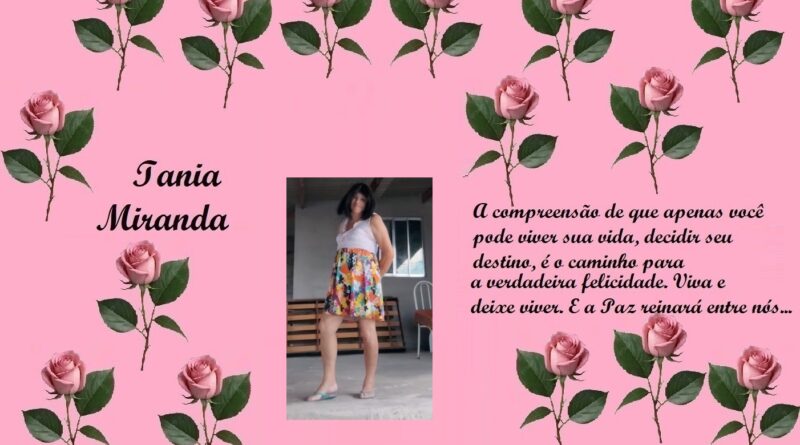 Trabalho como Agente de Organização Escolar (Secretaria de Educação do Estado de São Paulo) embora no momento esteja prestando serviço junto ao TRE, no Cartório Eleitoral como Auxiliar Requisitada. Gosto de escrever, tenho dois livros publicados, "Tirésias, a dualidade da alma humana"(autobiografia), pela Editora Verso e Prosa e "A volta do Justiceiro", romance explorando o folclore brasileiro, publicado pela UICLAP. Publico crônicas diariamente em alguns grupos, meu perfil e meu blog... (taniamirandablog.blogspot .com)... sou casada, tenho quatro filhos e dois netos, sendo que minha neta mora comigo desde os três meses de idade...