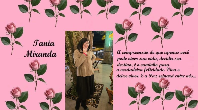 Trabalho como Agente de Organização Escolar (Secretaria de Educação do Estado de São Paulo) embora no momento esteja prestando serviço junto ao TRE, no Cartório Eleitoral como Auxiliar Requisitada. Gosto de escrever, tenho dois livros publicados, “Tirésias, a dualidade da alma humana”(autobiografia), pela Editora Verso e Prosa e “A volta do Justiceiro”, romance explorando o folclore brasileiro, publicado pela UICLAP. Publico crônicas diariamente em alguns grupos, meu perfil e meu blog… (taniamirandablog.blogspot .com)… sou casada, tenho quatro filhos e dois netos, sendo que minha neta mora comigo desde os três meses de idade…
