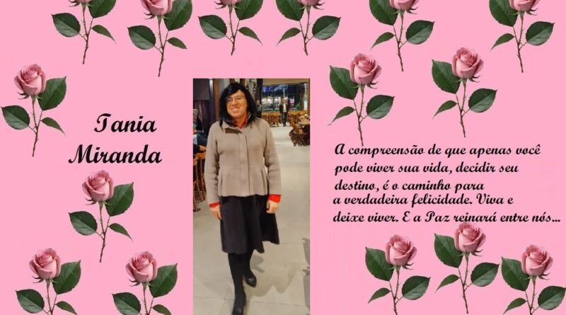 Trabalho como Agente de Organização Escolar (Secretaria de Educação do Estado de São Paulo) embora no momento esteja prestando serviço junto ao TRE, no Cartório Eleitoral como Auxiliar Requisitada. Gosto de escrever, tenho dois livros publicados, “Tirésias, a dualidade da alma humana”(autobiografia), pela Editora Verso e Prosa e “A volta do Justiceiro”, romance explorando o folclore brasileiro, publicado pela UICLAP. Publico crônicas diariamente em alguns grupos, meu perfil e meu blog… (taniamirandablog.blogspot .com)… sou casada, tenho quatro filhos e dois netos, sendo que minha neta mora comigo desde os três meses de idade…